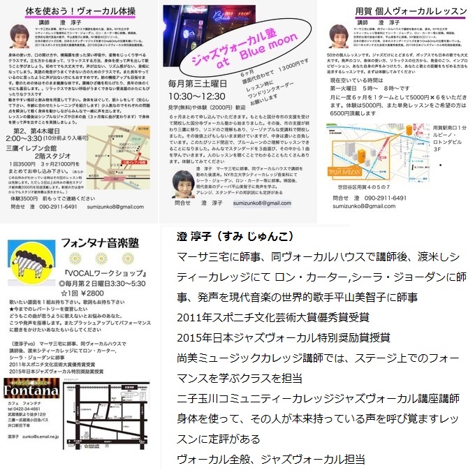 ★ 自宅での個人レッスン 三鷹駅バス10分 吉祥寺駅バス5分 井の頭線久我山駅バス12分 月1回 5,000円 月2回 4,000円です。 ★ 東村山 サウンド・スクエア 個人レッスン ★ のチラシを拡大して見る ★ のチラシを拡大して見る ★ のチラシを拡大して見る ★ のチラシを拡大して見る